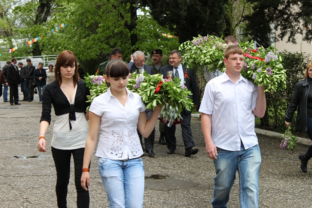 7 мая в филиале РГГМУ в г. Туапсе и в Туапсинском гидрометеорологическом техникуме состоялся митинг, посвященный празднованию Великой Победы, организованный руководством учебного заведения, городским Советом ветеранов войны, труда, Вооруженных Сил и правоохранительных органов, студсоветом ВУЗа. В торжественном мероприятии приняли участие: Глава Туапсинского района В.В. Лыбанев, председатель Совета муниципального образования г. Туапсе Е.К. Сердюк, председатель Совета ветеранов Великой Отечественной войны Туапсинского района В.Ф. Никитенков, депутаты горсовета, руководители предприятий, организаций и учреждений города, председатели профсоюзных комитетов, Советов общественных организаций и формирований, журналисты местных СМИ, преподаватели и студенты. Участники митинга минутой молчания почтили память героев войны. Студенческая молодежь приветствовала ветеранов и гостей цветами, песнями, презентациями патриотической, поисковой, музейно-экспозиционной работы в филиале. А накануне студенты, входящие в отряд «Доброе сердце», посетили 117 ветеранов войны и тружеников тыла по мету жительства, в хосписе и больницах, вручили им свои подарки. И, конечно, непременным атрибутом было традиционное угощение у полевой кухни солдатской кашей, сваренной по всем армейским правилам. Возложение цветов, венков и гирлянд к памятнику «ДОТ», где состоялась закладка капсулы - пожелания студентам 2015 года, фотографирование с молодёжью на память, посещение музейной экспозиции, участие в концертной программе - все это создавало атмосферу воздания должного и уже ушедшим и ныне живущим ветеранам Великой Отечественной войны. Уезжая, ветераны благодарили руководство филиала, профессорско-преподавательский состав, сотрудников и студентов учебного заведения за внимание, за признание их, ветеранской жизни, отданной защите Родины, и, садясь в автобусы торжественно, бодро и трогательно запели: «День Победы ...»