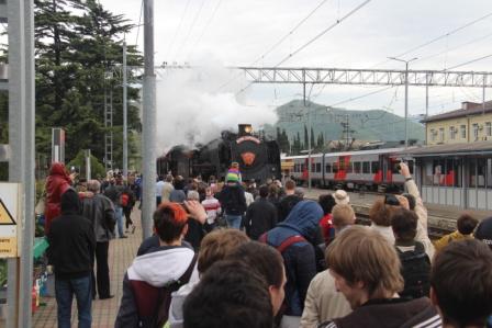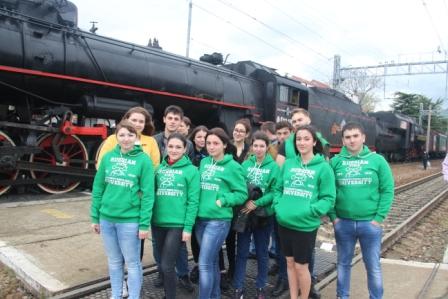 Сегодня Туапсе посетил музей истории на колесах. На железнодорожный вокзал города прибыл путешествующий по Кубани реконструированный поезд времен Великой Отечественной войны «Победа». Вместе с собравшимися на перроне жителями, ветеранами, школьниками были и студенты филиала ФГБОУ ВО "РГГМУ" в г. Туапсе.