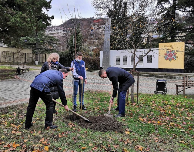 В городе Туапсе заложили сквер Русского географического общества21 декабря 2020 года в городе воинской славы Туапсе состоялась церемония высадки сквера Русского географического общества. Организатором мероприятия выступили филиал ФГБОУ ВО "РГГМУ" в г. Туапсе, Туапсинское районное отделение Русского географического общества, Администрация города Туапсе и городской Совет депутатов. Акция была посвящена 175-летию Русского географического общества и 75-летию Победы в Великой Отечественной войне. Этот день был выбран организаторами неслучайно, ведь накануне, 20 декабря, отмечалась 78-я годовщина окончания Туапсинской оборонительной операции 1942 года. В церемонии высадки деревьев приняли участие директор филиала ФГБОУ ВО "РГГМУ" в г. Туапсе, председатель Туапсинского районного отделения КРО РГО Микаэл Сергеевич Аракелов, доцент филиала ФГБОУ ВО "РГГМУ" в г. Туапсе Нурета Темботовна Напсо, председатель Совета депутатов города Туапсе Владимир Владимирович Стародубцев, руководитель информационно-аналитического центра Краснодарского регионального отделения РГО Галина Владимировна Кучинская, депутаты Совета, представители Станции юных туристов г. Туапсе, Волонтерского корпуса города, студенты филиала ФГБОУ ВО "РГГМУ" в г. Туапсе. Ровно 21 саженец багрянника – по количеству местных отделений РГО в Краснодарском крае – пополнили парк имени 50-летия Победы в микрорайоне Грознефть. Рядом с саженцами установили информационные таблички с QR-кодами. Сканируя их с помощью мобильных телефонов, посетители парка могут перейти на портал Русского географического общества, на страницу местного отделения КРО РГО, и узнать больше о его деятельности. По словам Владимира Владимировича Стародубцева, мероприятие состоялось благодаря слаженной работе руководства филиала ФГБОУ ВО "РГГМУ" в г. Туапсе, местного отделения РГО, Администрации Туапсе и депутатского корпуса, при непосредственной поддержке председателя Краснодарского регионального отделения РГО Ивана Геннадьевича Чайки и главы города Туапсе Сергея Владимировича Бондаренко. Как отметила представитель регионального отделения РГО Галина Владимировна Кучинская, Туапсинское отделение РГО – один из лидеров среди местных отделений в крае, и это, во многом, благодаря активному сотрудничеству отделения с филиалом ФГБОУ ВО "РГГМУ" в г. Туапсе, на базе которого отделение функционирует, и органами власти муниципалитета. Закладка нового сквера или аллеи – это всегда созидание, забота о будущем, ведь спустя годы деревья будут радовать своим цветением и зеленью следующие поколения. Теперь в планах местного отделения – установка в центре сквера памятного знака в честь Русского географического общества!