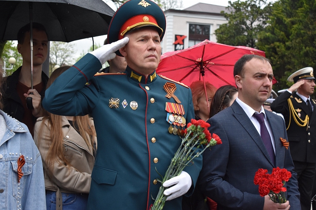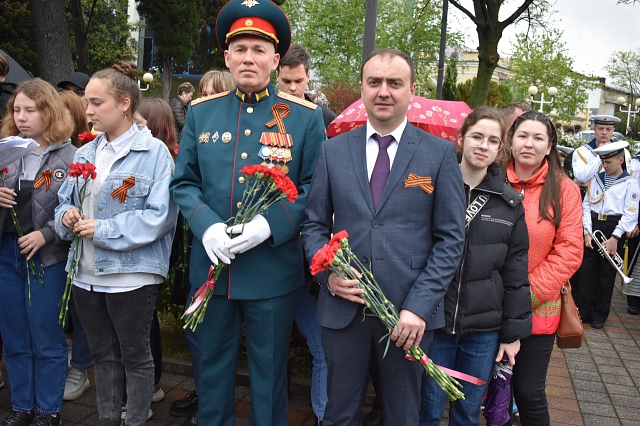 Студенты и сотрудники филиала ФГБОУ ВО "РГГМУ" в г. Туапсе на митинге, посвященном годовщине присвоения Туапсе звания "Город воинской славы"5 мая 2022 года в городе Туапсе прошел памятный митинг, посвященный 14-ой годовщине присвоения Туапсе звания "Город воинской славы" и 41-ой годовщине награждения Туапсе орденом Отечественной войны I степени. В мероприятии приняли участие директор филиала ФГБОУ ВО "РГГМУ" в г. Туапсе С.А. Олейников, заместитель директора М.С. Аракелов, студенты и преподаватели вуза. Участники мероприятия почтили память павших в боях за Туапсе в годы Великой Отечественной войны 1941 - 1945 гг. минутой молчания, а также возложили цветы к мемориалу "Туапсе - город воинской славы".