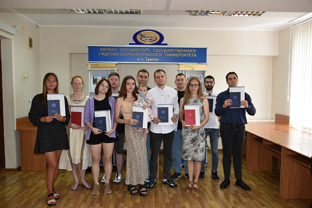 5 июля 2023 года состоялось торжественное вручение дипломов студентам очного отделения направлений подготовки "Экология и природопользование" и "Прикладная гидрометеорология". В торжественной обстановке было вручено 16 дипломов о высшем образовании, из них 3 - с отличием. С напутственным словом выступили директор филиала Сергей Анатольевич Олейников и заведующая кафедрой Светлана Николаевна Цай, пожелали выпускникам успехов в профессиональной деятельности.