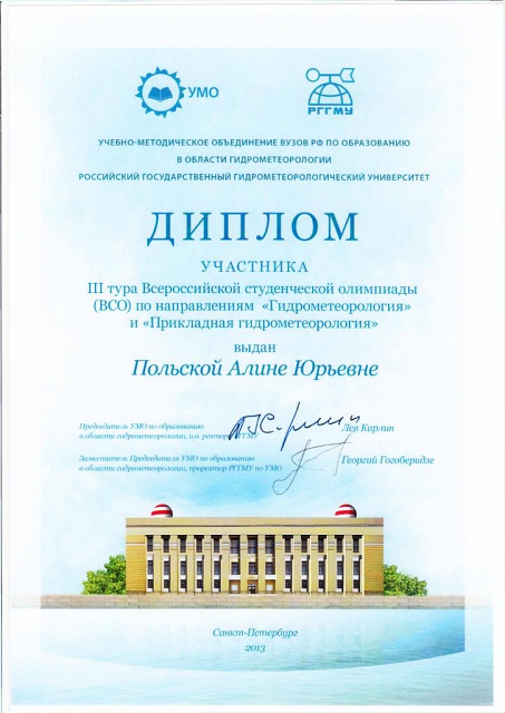 Студенты 3 курса филиала РГГМУ в г. Туапсе специальности Метеорология приняли участие в 3 туре Всероссийской студенческой олимпиады по направлениям «Гидрометеорология» и «Прикладная гидрометеорология», проходившей в рамках пленума Совета Учебно-методического объединения вузов РФ по образованию в области гидрометеорологии.